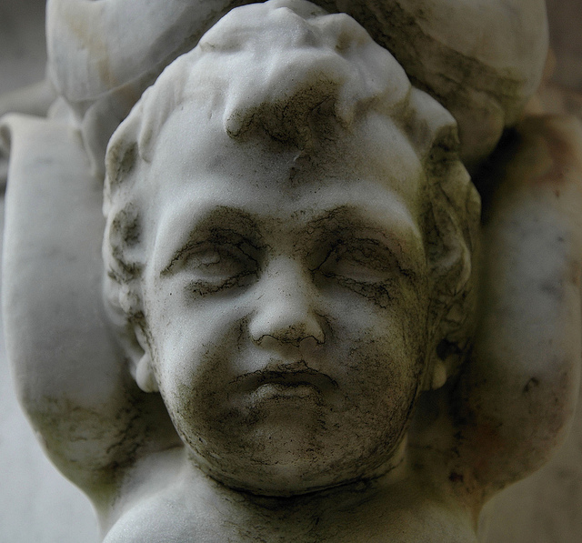 Vanishing Coastal Georgia Cherubic Face Baby with Wings As Support on Schwarz Monumental Headstone Bonaventure Cemetery Savannah GA Picture Image Photo Copyright Brian Brown Photographer USA 2012